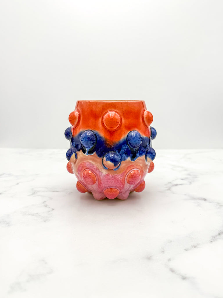 *The glaze colors didn’t blend like I wanted them to, and the bottom glaze bubbled on me.